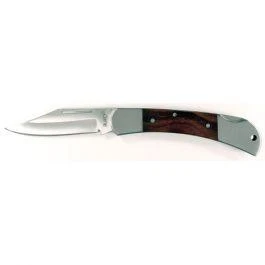 Lockback folding knife, hardwood handle, 420A stainless steel. Blade Length: 3-1/2″ Closed length: 4-3/8″.